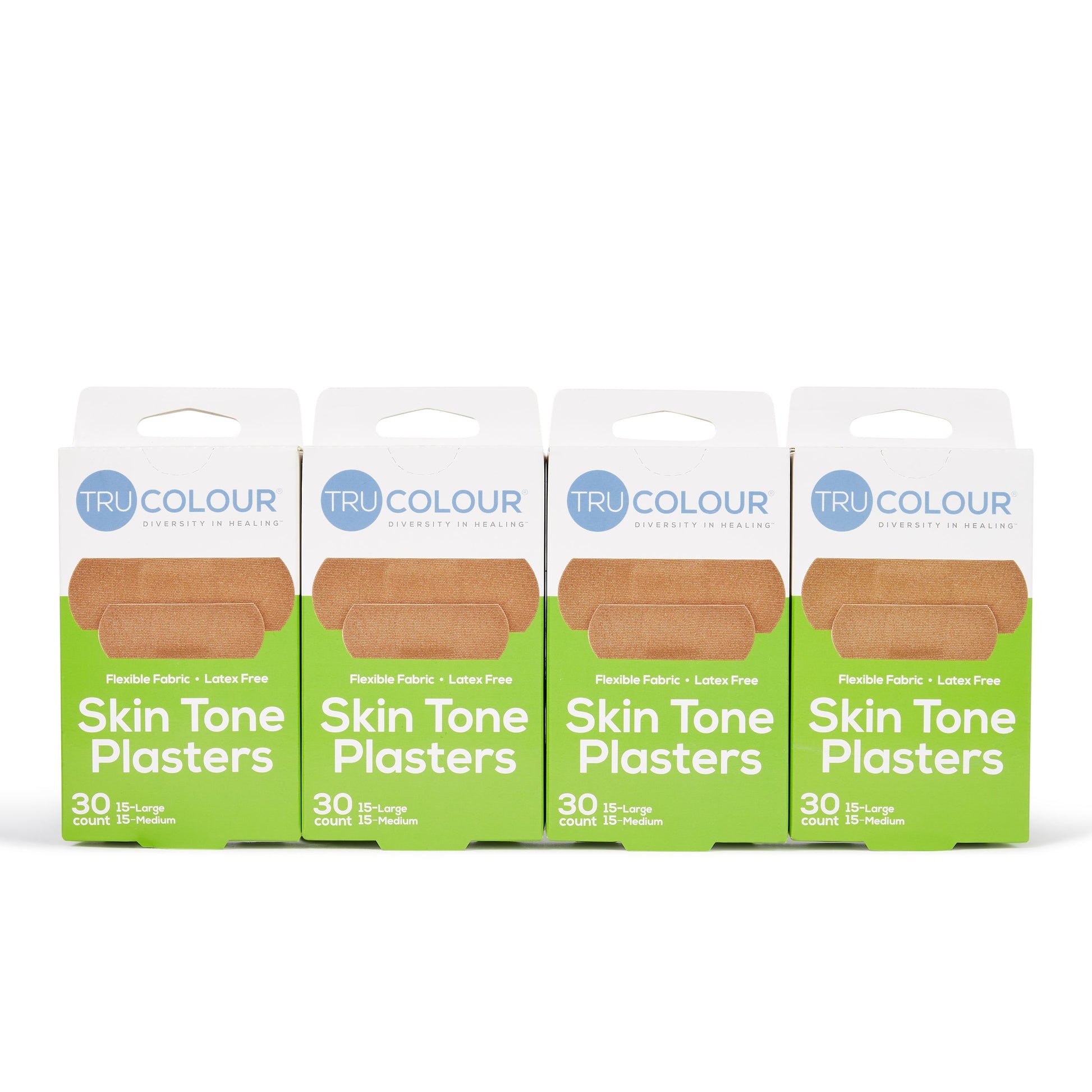 Tru-Colour plasters are latex-free, skin-tone shade plasters. We believe in the beauty of individuality and as the leader in multi-cultural bandages, Tru-Colour offers a variety of 4 skin-tone shades so you can select a shade that is right for you.